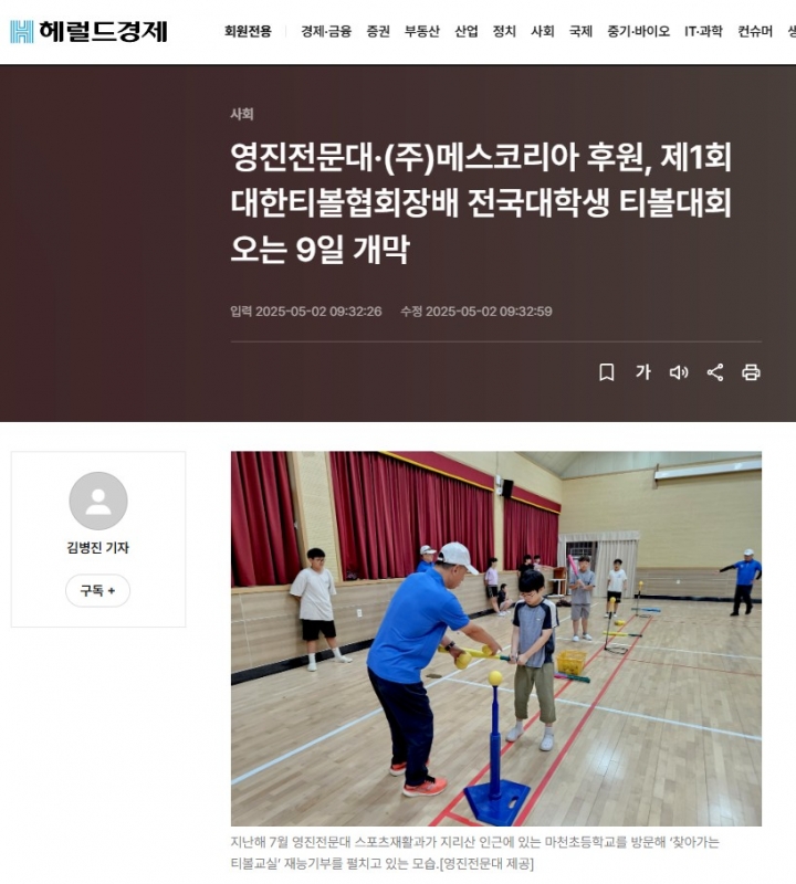 제1회 대한티볼협회장배 전국대학생 티볼대회(헤럴드경제) 작성자 관리자 등록일 2025.05.02 11:14:40 조회 6 clear:both;"> 목록 이전글 대한티볼협회 초대회장에 곽대훈 선출(대구신문) 다음글 제1회 대한티볼협회장배 전국대학생 티볼대회(영남일보)